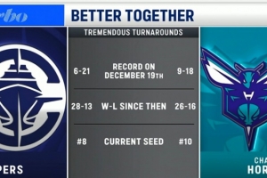 目前排名:快船西部第八,黄蜂东部第十