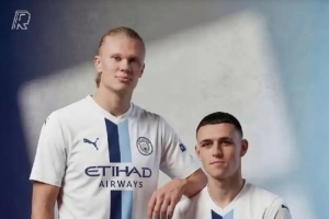 有设计师已根据这一热门设计,PS出了曼城球员身着该球衣的上身效果图,提前展现了球衣的赛场视觉效果。