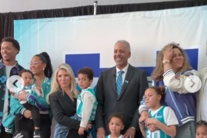 “我非常高兴父亲能获得这份荣誉,不仅仅因为他是前NBA球员,让我有机会目睹他的每一个动作,更因为他是一位教我打球的父亲,甚至比我本人还要爱篮球。他向我展示了成为一名真正的职业球员的意义,以及如何通过努力赢得这一切。所以,篮球对于我们家族来说就是重要的一部分。今天能够和我的兄弟(赛斯)一起出席仪式,对我来说意义重大。显然,库里家族的历史与夏洛特紧密相连,而30号球衣以后将永被铭记,这对我们来说意味着所有。这也是我的父亲仍然住在这里的原因,这里依然是我们的家。”库里表示。
