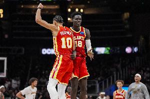 本场比赛,老鹰两位锋线盖耶和里萨谢都有出色发挥,面对勇士打得予取予求,其中盖耶6中6,三分球4中4,拿到16分10篮板2助攻3盖帽的数据;里萨谢6中5,三分球4中3,罚球5中4,拿到17分2篮板的数据。