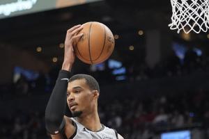 此役,文班亚马出战24分07秒,5投3中,三分1中1,罚球5中3,得到10分8篮板4助攻3抢断6盖帽,正负值+41。