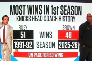按目前的胜率推算,迈克·布朗能拿到53胜