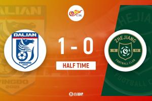 半场战罢,大连英博暂1-0浙江。