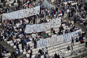 体育资讯4月11日讯 马赛球迷在今天凌晨球队3-1击败梅斯的比赛中拉起横幅,嘲讽了新队徽的设计以及俱乐部的混乱。
