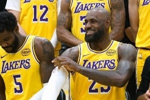 体育资讯3月10日讯 今日,湖人在球队训练期间举行了拍摄赛季全队合影的活动。