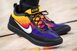 球队晒出了赛前布克热身的画面,还有他脚上新配色球鞋的特写。这双球鞋是Book 2 “The Valley”配色。以球队城市版球衣为灵感。