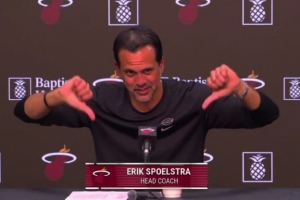 赛后,热火主教练斯波尔斯特拉接受采访时,记者表示:“接下来我要问一个跟阿德巴约无关的问题。”