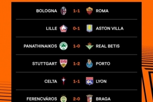 欧联杯1/8决赛首回合比赛结果: